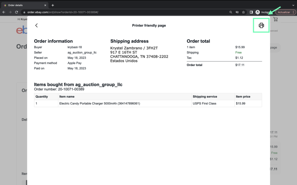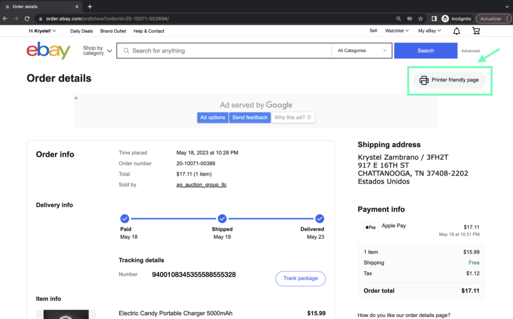 - En esta pantalla, ubica tu último pedido y dale click en la opción de ‘Ver detalle de la orden’ o ‘View order details’.