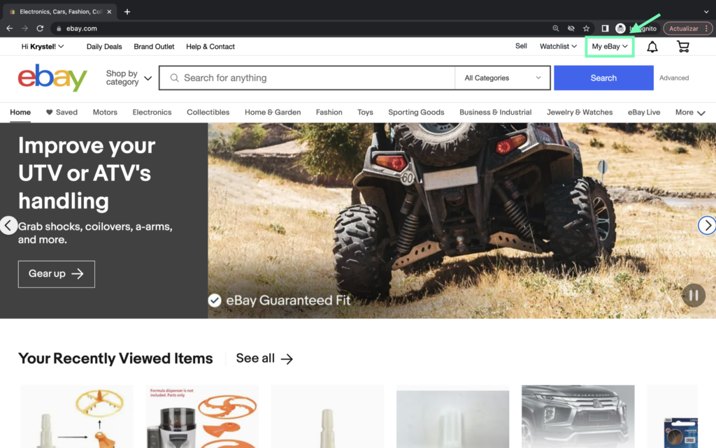 - En tu cuenta de Ebay, en la parte superior derecha ingresa a ‘My eBay’.